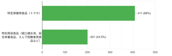 (1)関心のある食品群(1つ以上選択、複数選択可)は、トクホが約9割、特別用途食品が約4割でした。 ![]()